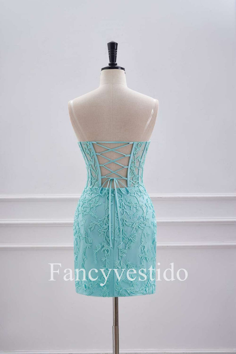 Strapless Aqua Blue Corset Tight Homecoming Dress with Appliques