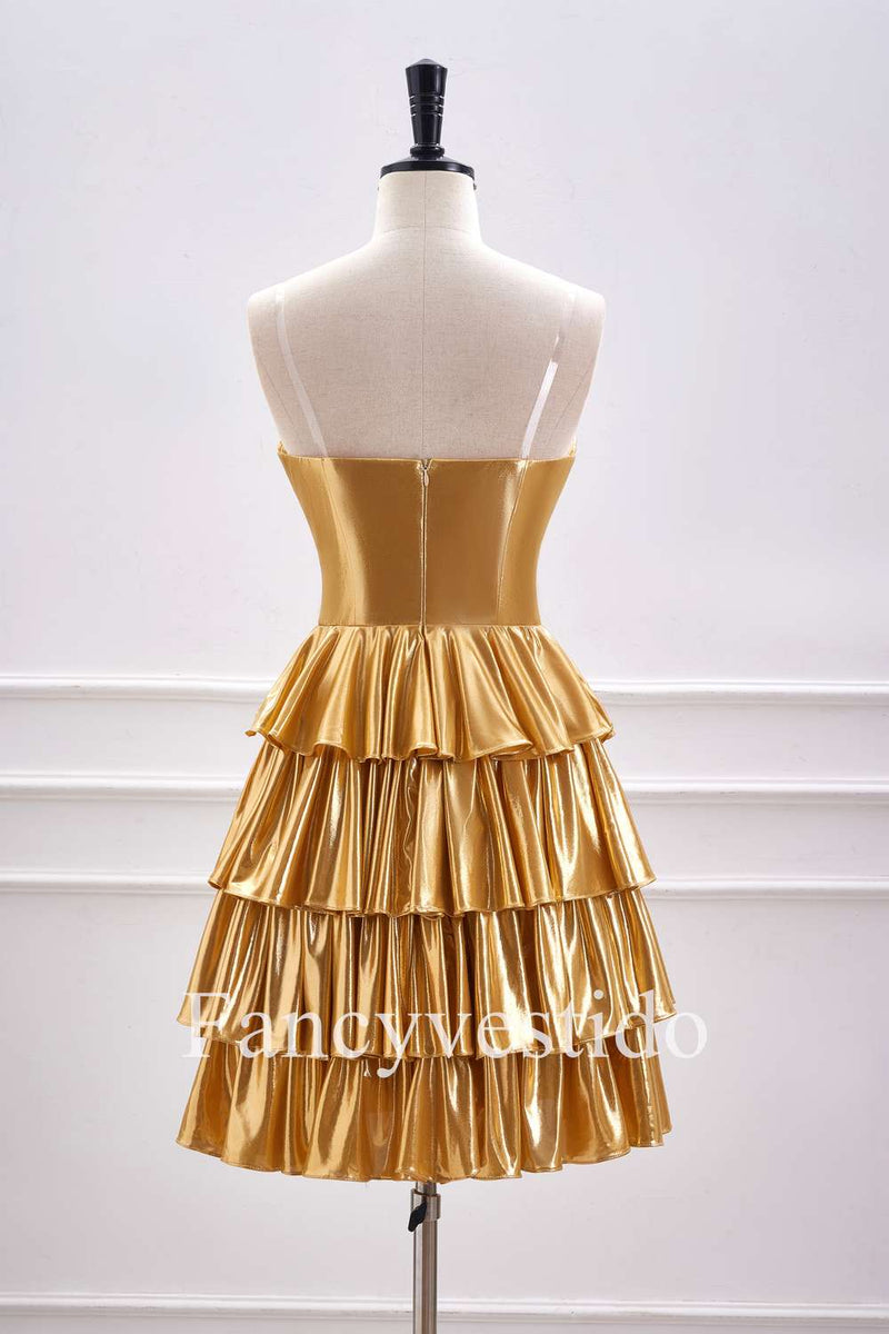 Sweetheart Gold Metallic Tiered A-Line Short Homecoming Dress