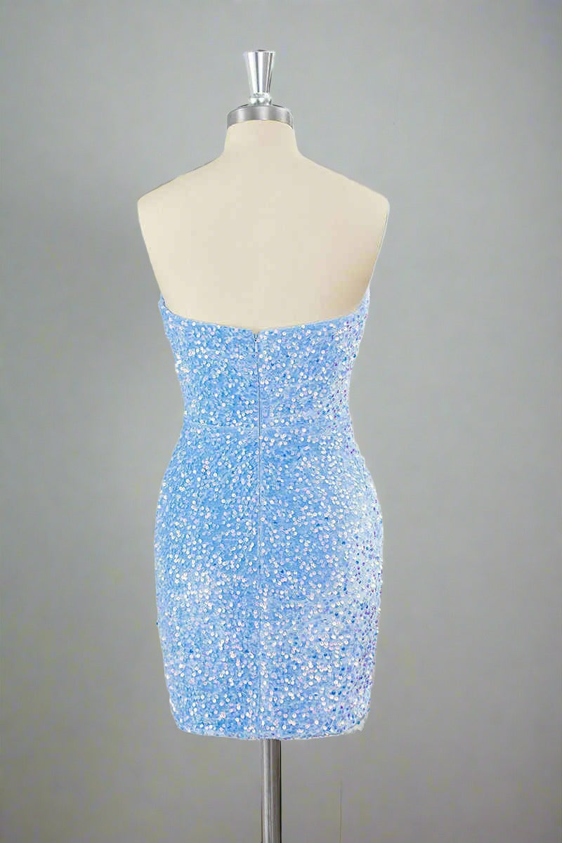 Light Blue Strapless Sequin Mini Dress