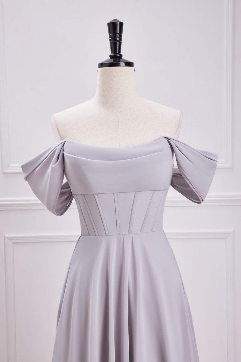 Grey Off the Shoulder Chiffon A-Line Bridesmaid Dress