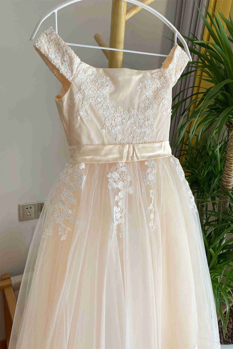 Off the Shoulder Champage Appliques Flower Girl Dress