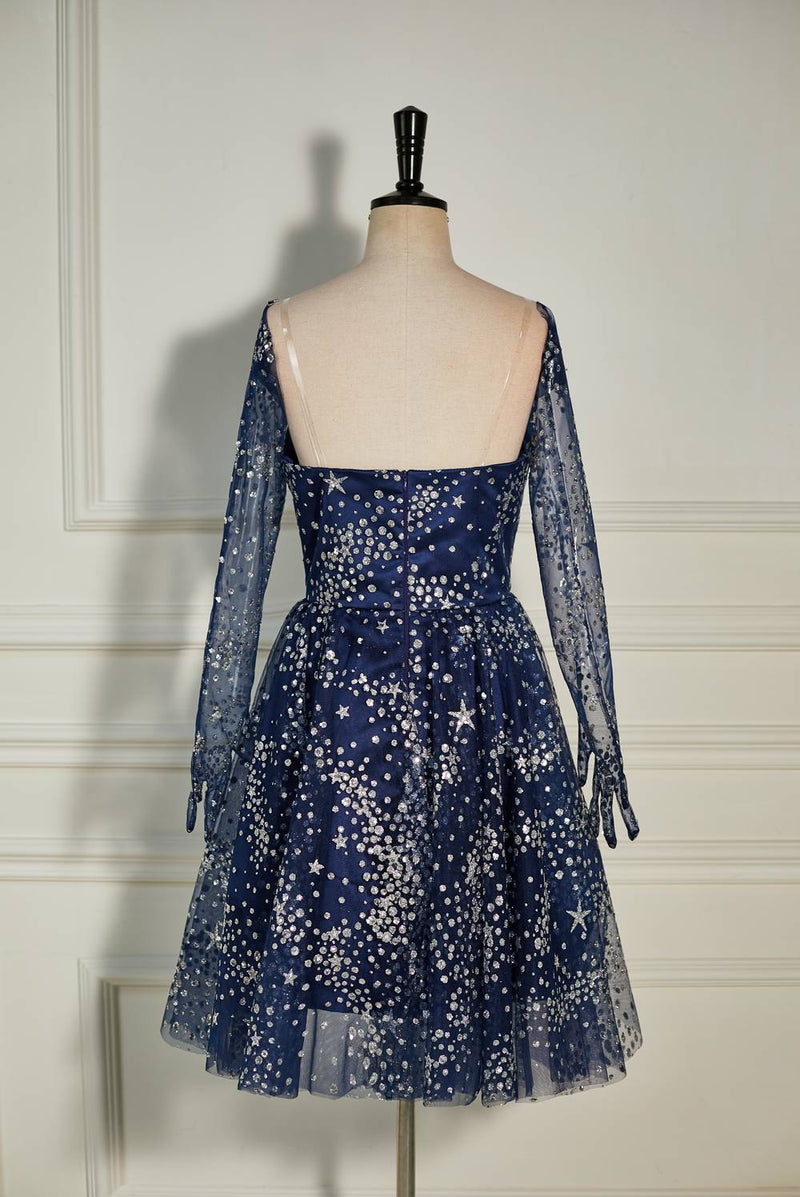 Strapless Navy Blue Sequin Homecoming Dress with Long Gloves