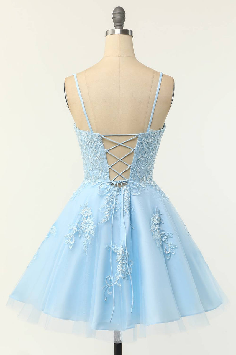 Straps Light Blue A-Line Homecoming Dress with Appliques
