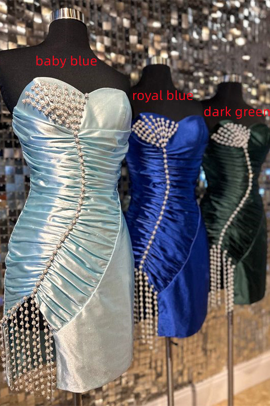 Sweetheart Baby Blue Ruched Bodycon Homecoming Dress with Pearls