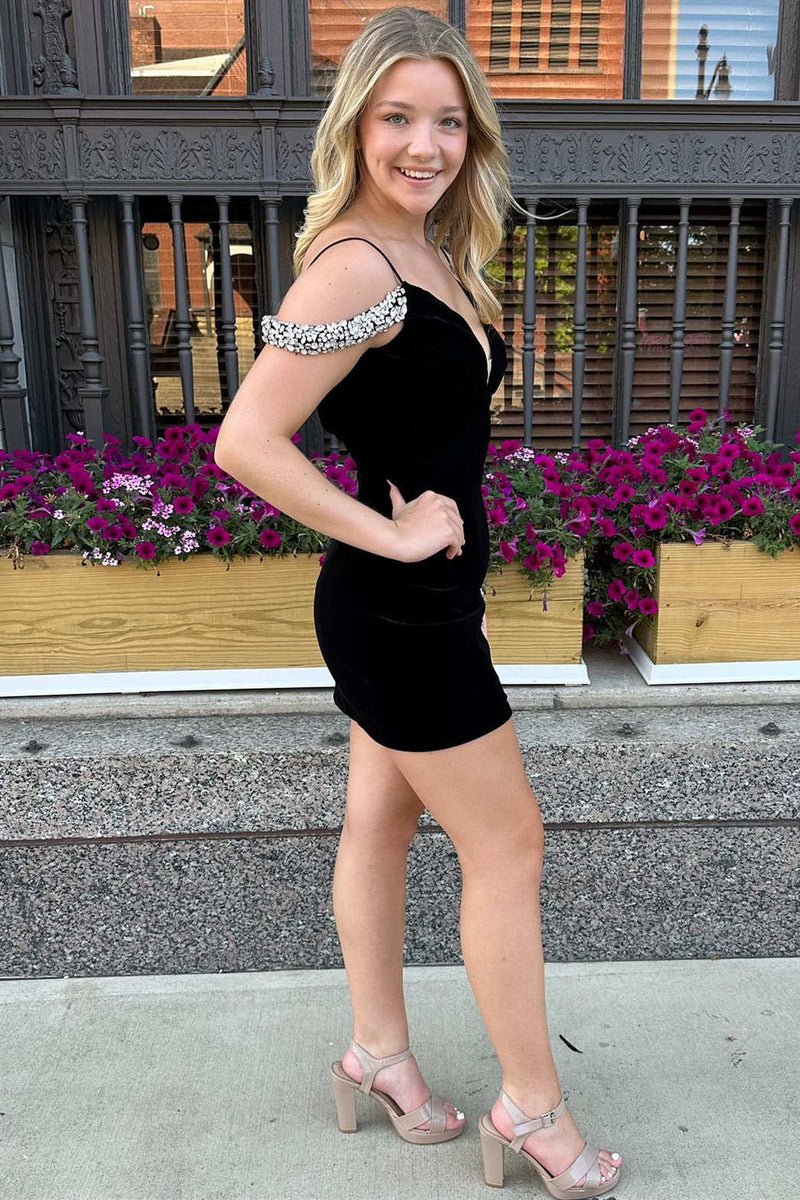 Cold-Shoulder Black Velvet Bodycon Homecoming Dress