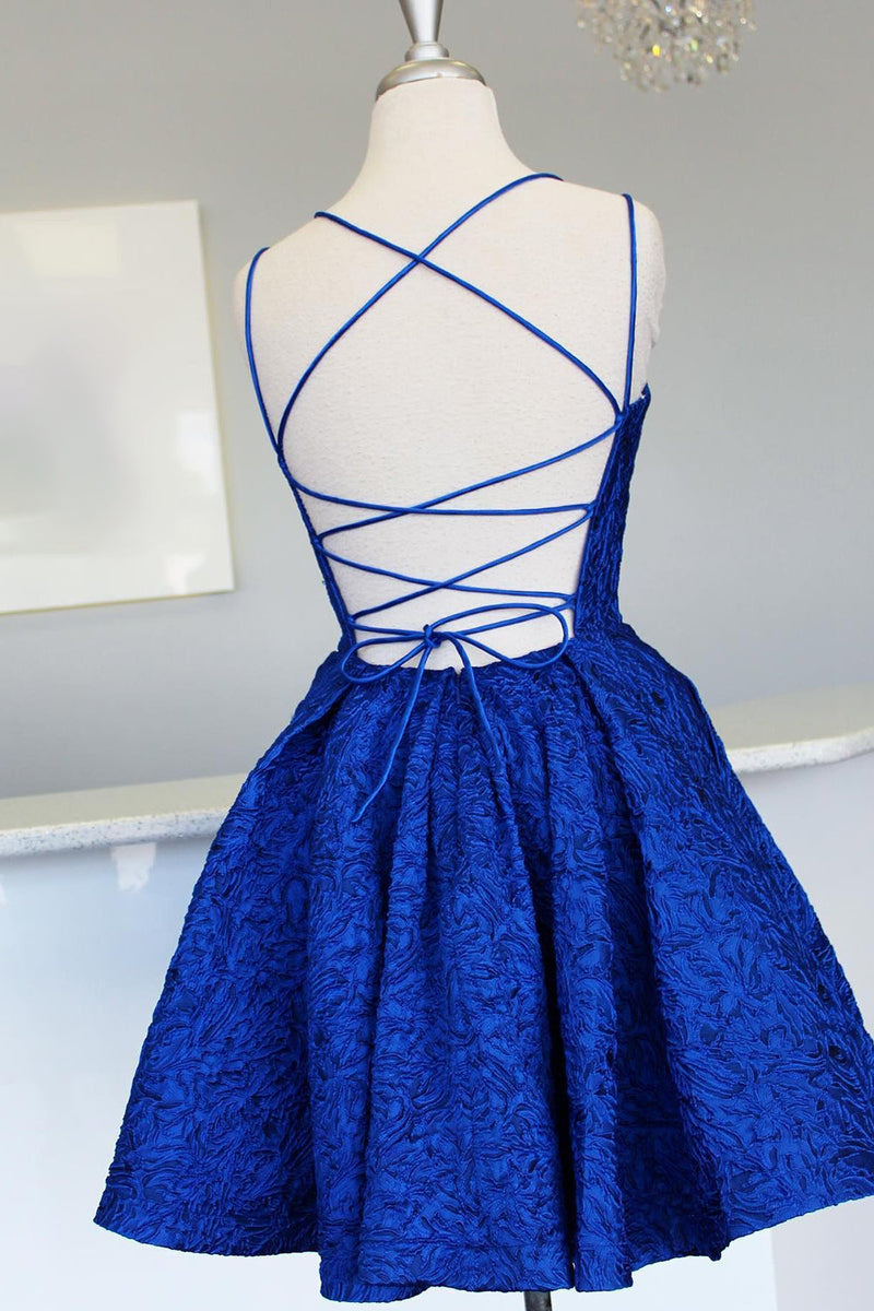 Straps One Shoulder Royal Blue Beaded Short Homecoming Dress