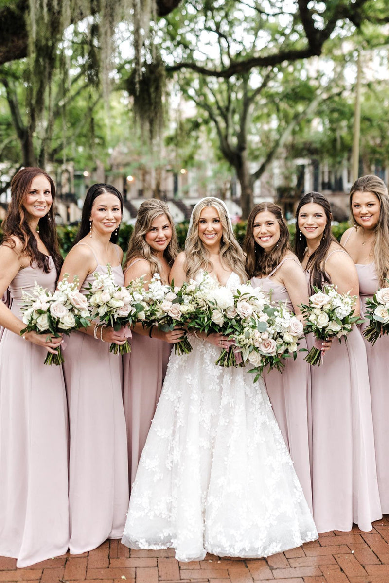 Tie Back Blush Pink A-Line Long Bridesmaid Dress