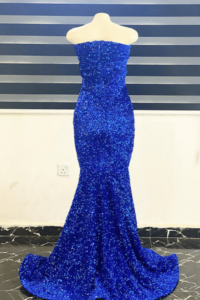 Royal Blue Sequins Strapless Mermaid Long Prom Dress