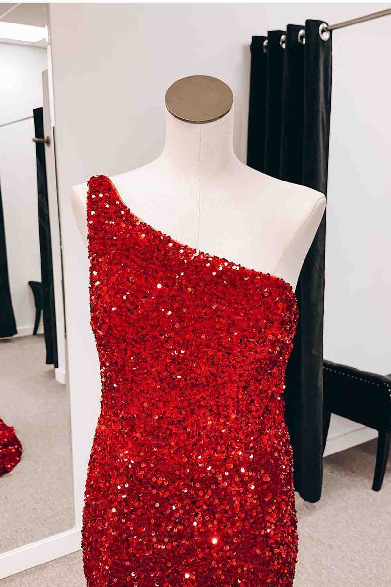 Burgundy One Shoulder Mermiad Sequins Backless Long Prom Dress