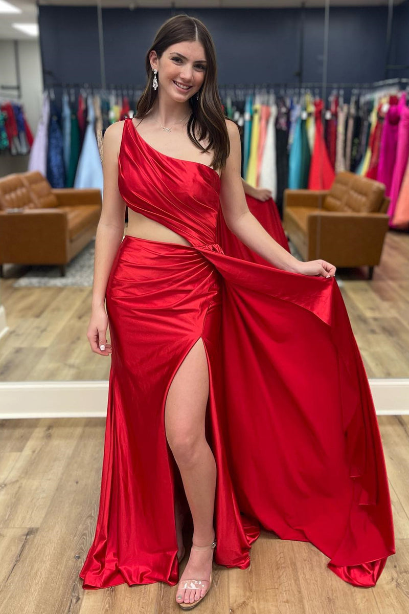 Pleated One Shoulder Side Cut-Out Long Prom Dress