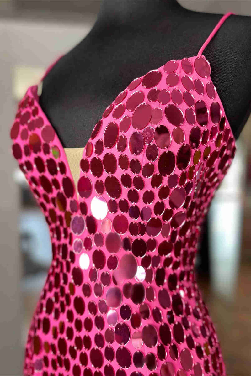 Tight Hot Pink Glass Mirror Sequined Homecoming Dress