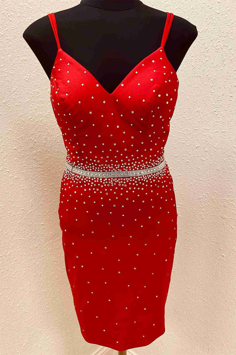 Straps Red Short Homecoming Dress with Rhinestones