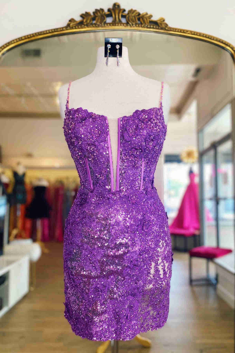 Lilac Sequins Appliqued Bodycon Homecoming Dress with Feather