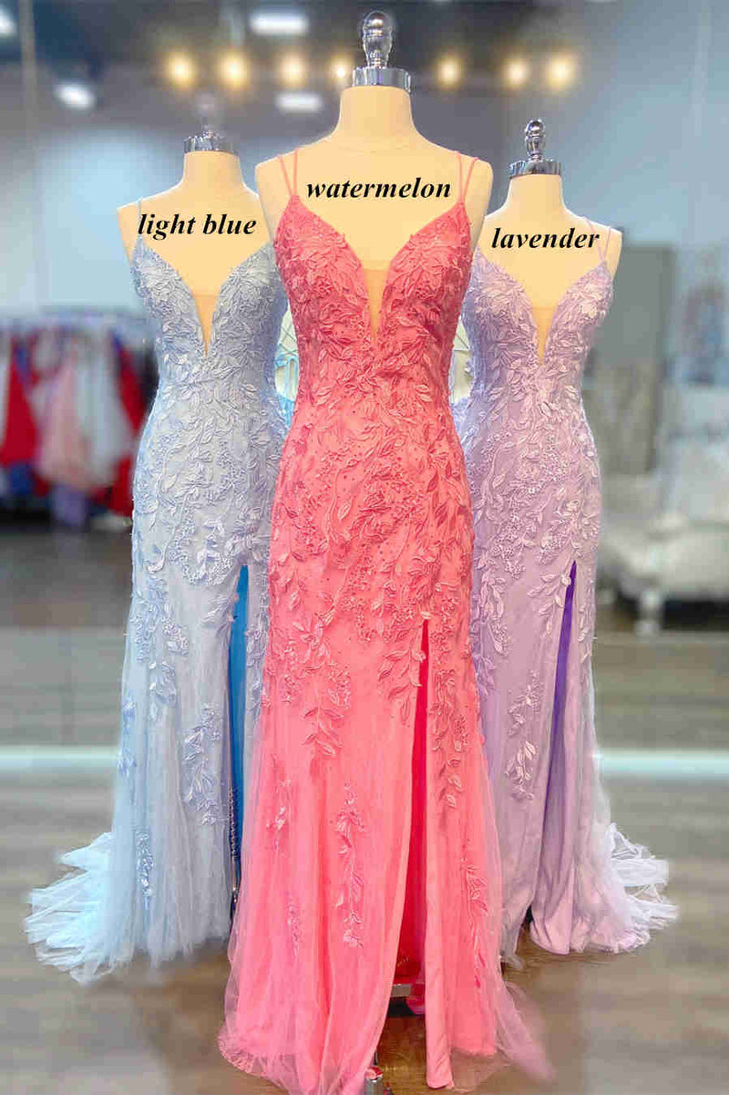 Spaghetti Straps Watermelon Appliques Long Formal Dress