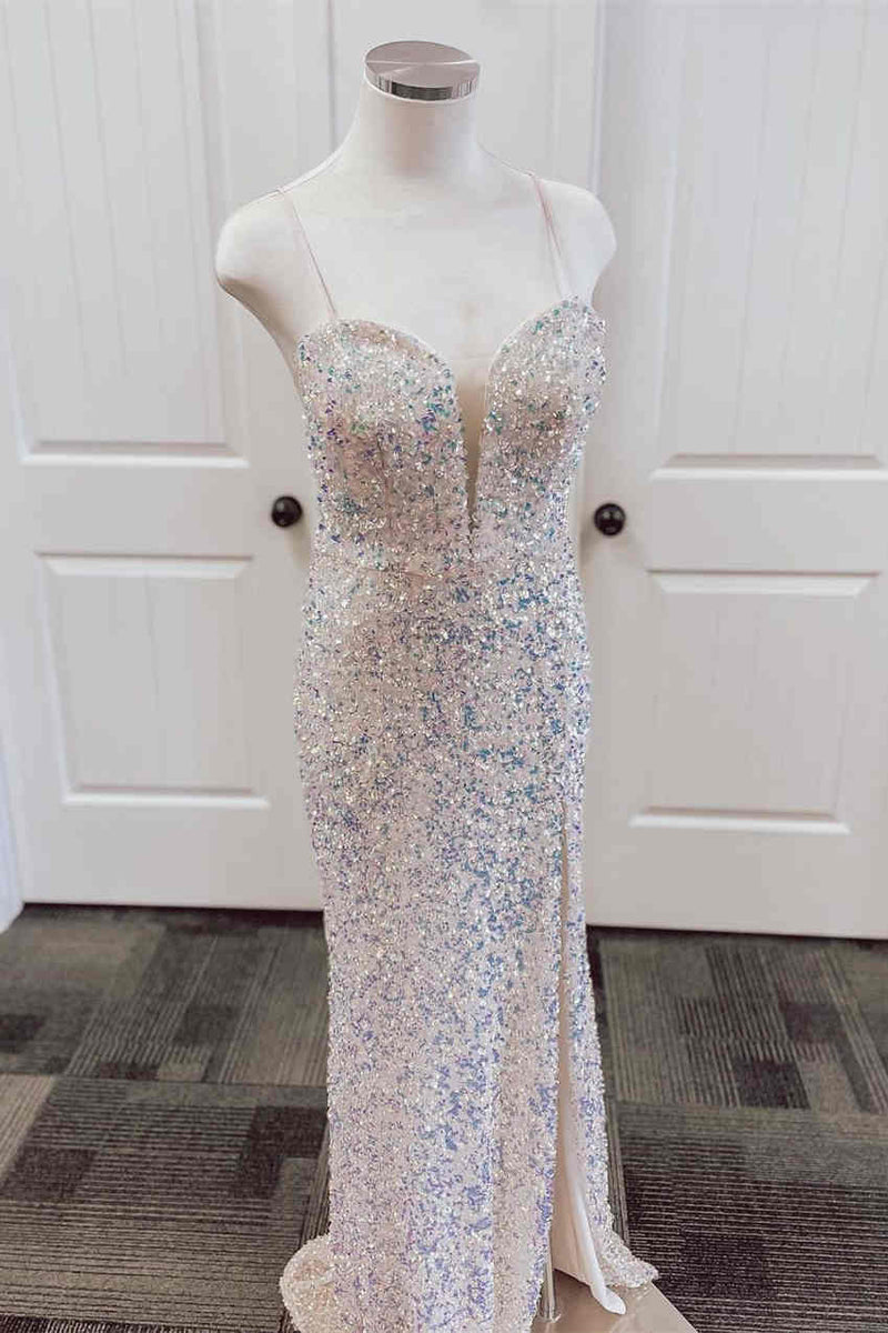 Stunning Backless Mint Green Sequins Party Dress with Slit
