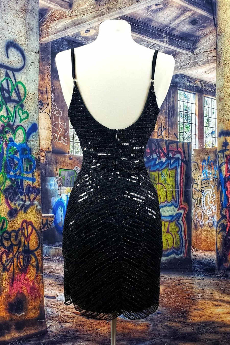 Tight V-Neck Beaded Black Short Homecoming Dress
