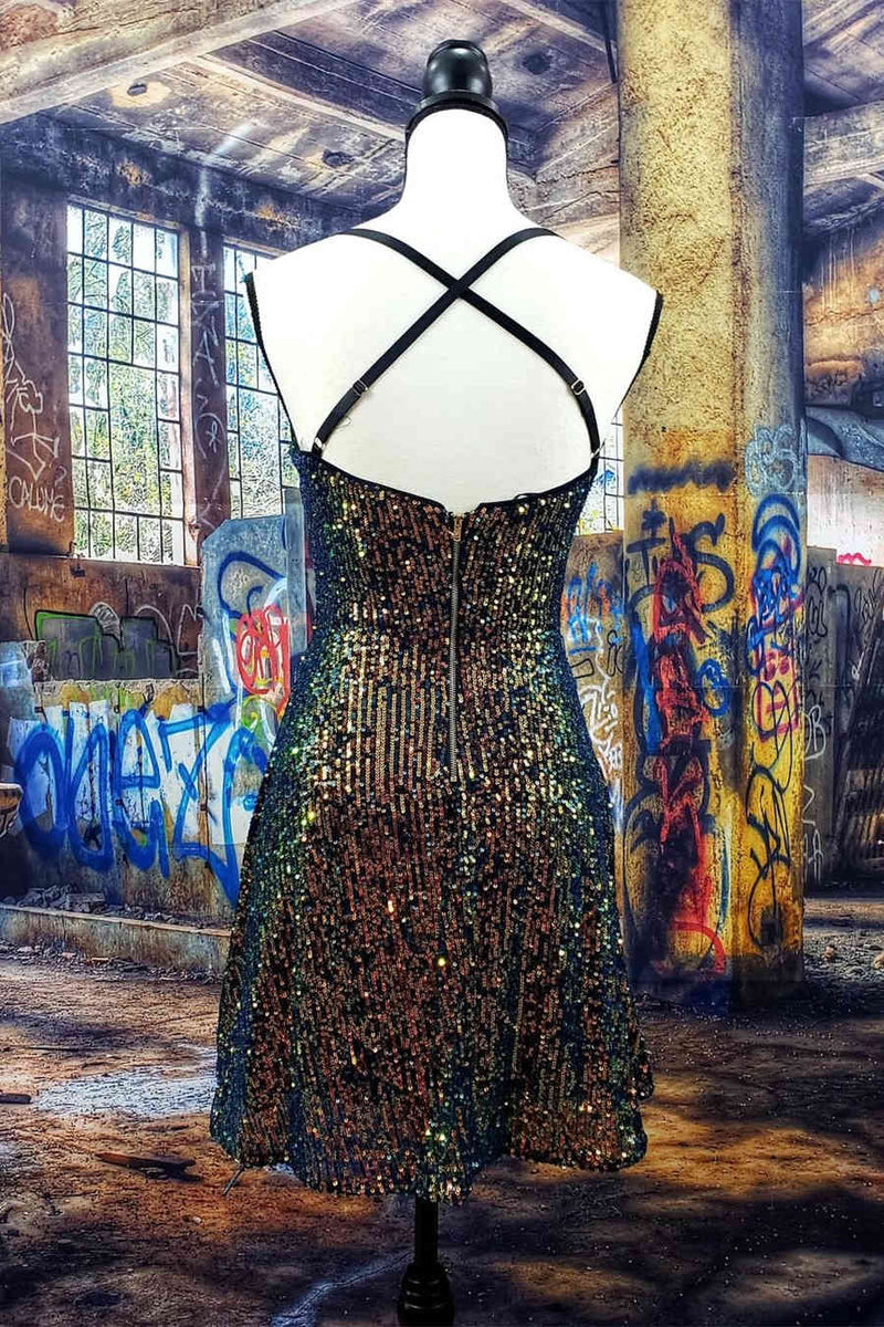 Criss Cross Back Ombre Sequind Short Homecoming Dress