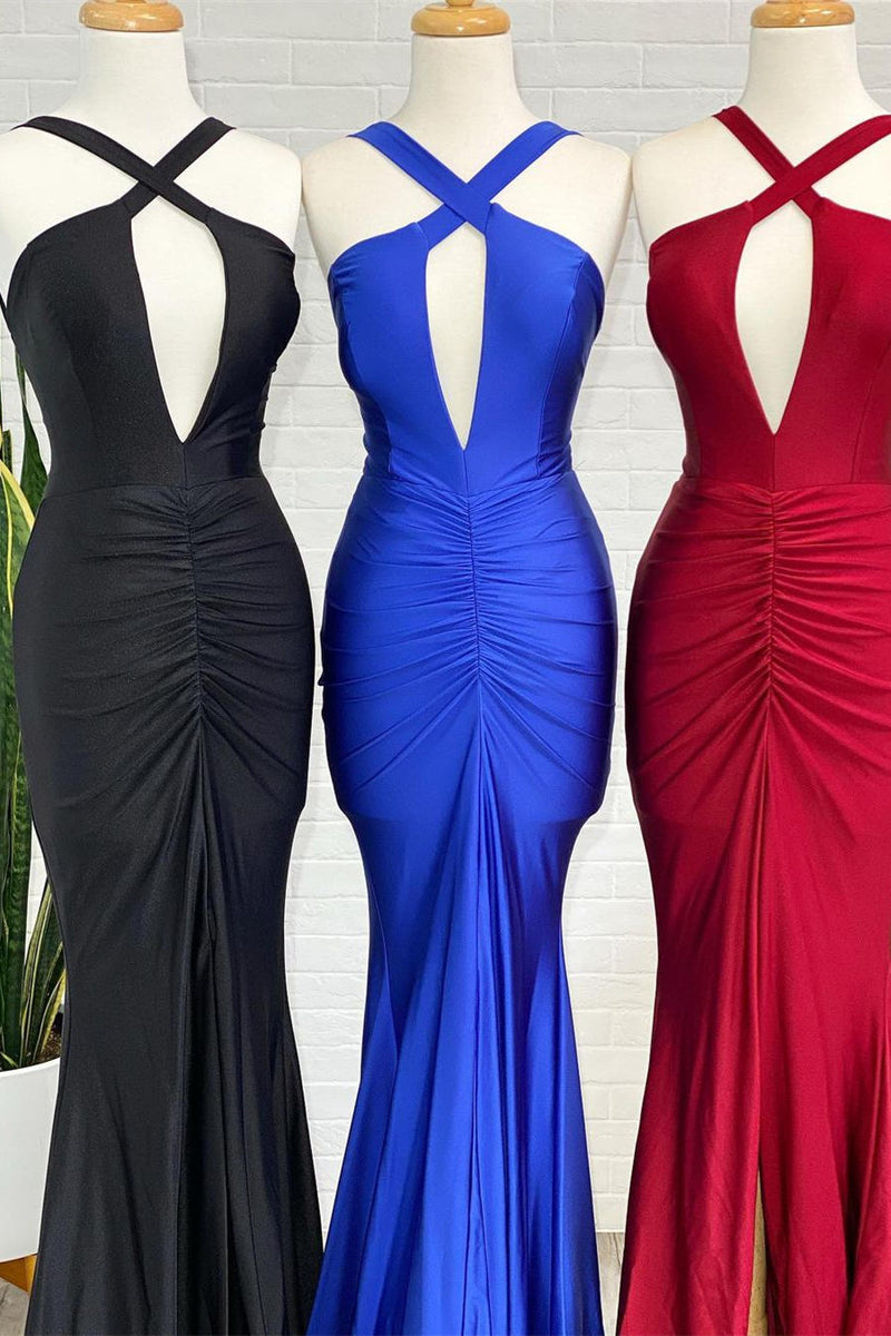 Sexy Key Hole Royal Blue Mermaid Long Prom Dress