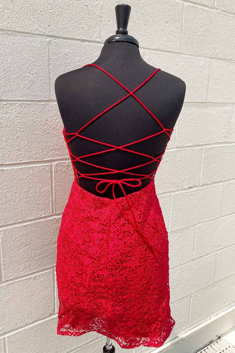 Short Red Lace Tight Homecoming Dress