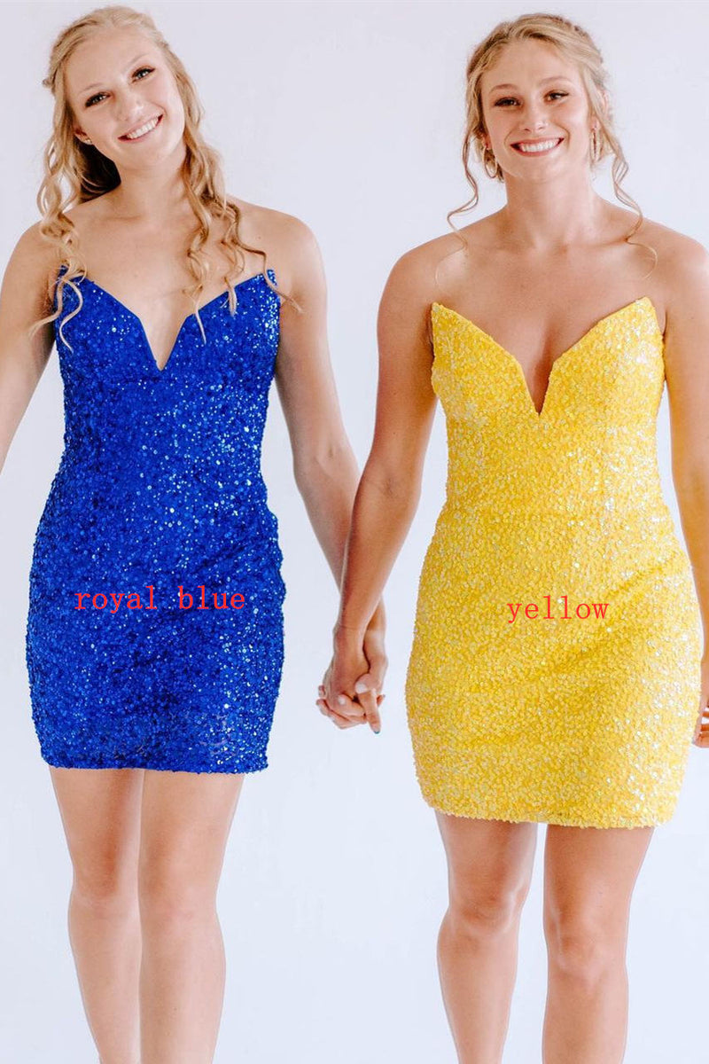 Strapless Yellow Bodycon Sequined Homecoming Dress