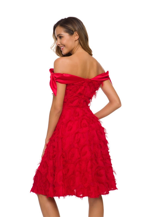 Elegant Off the Shoulder Red Short Party Dress with Tassel