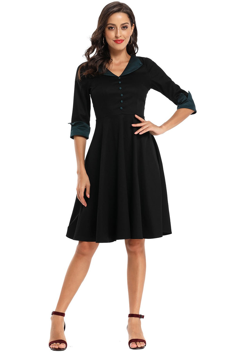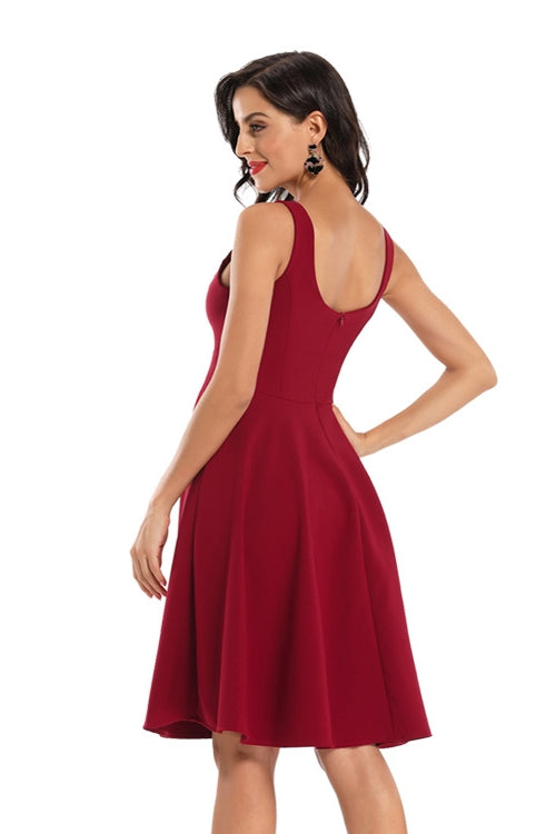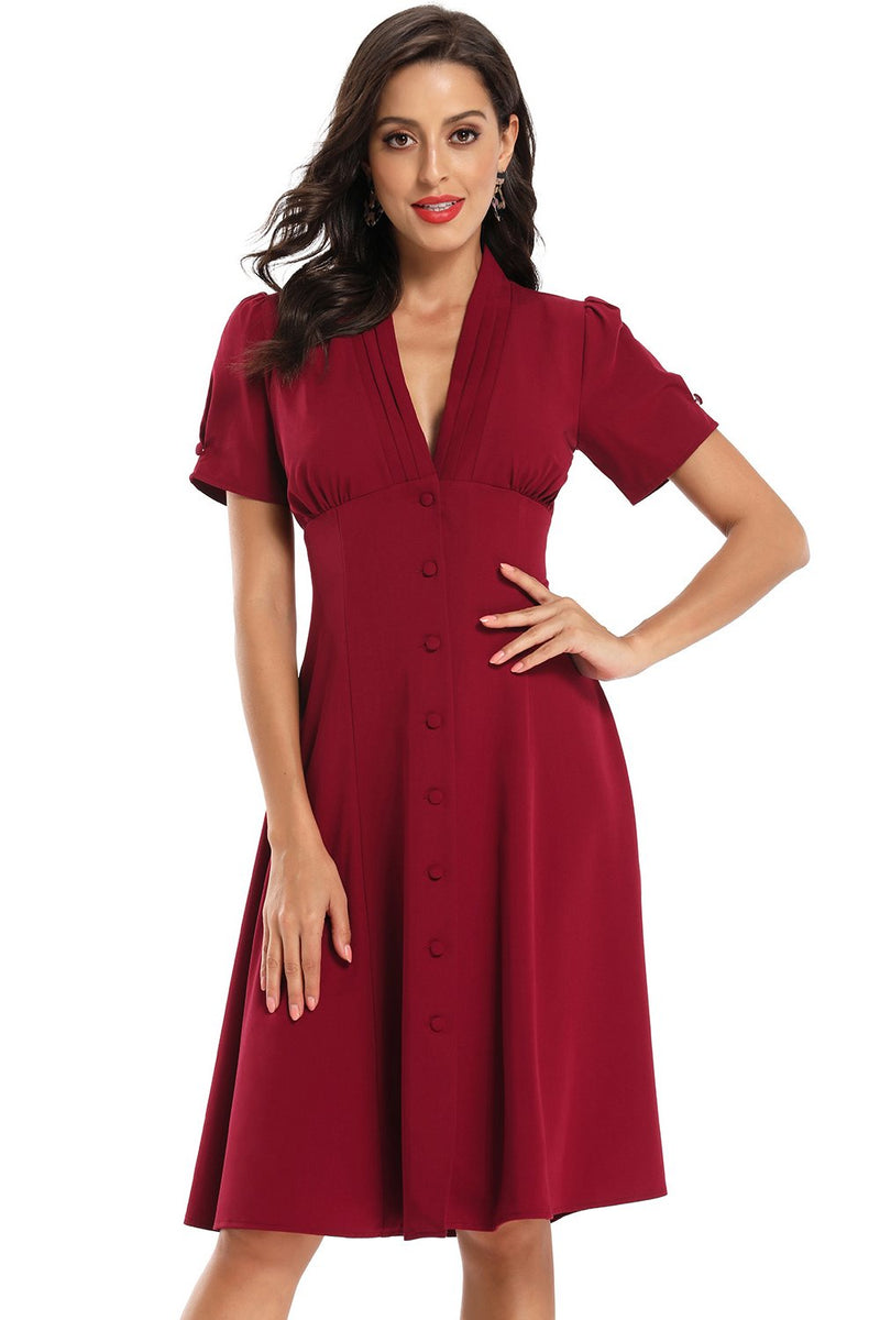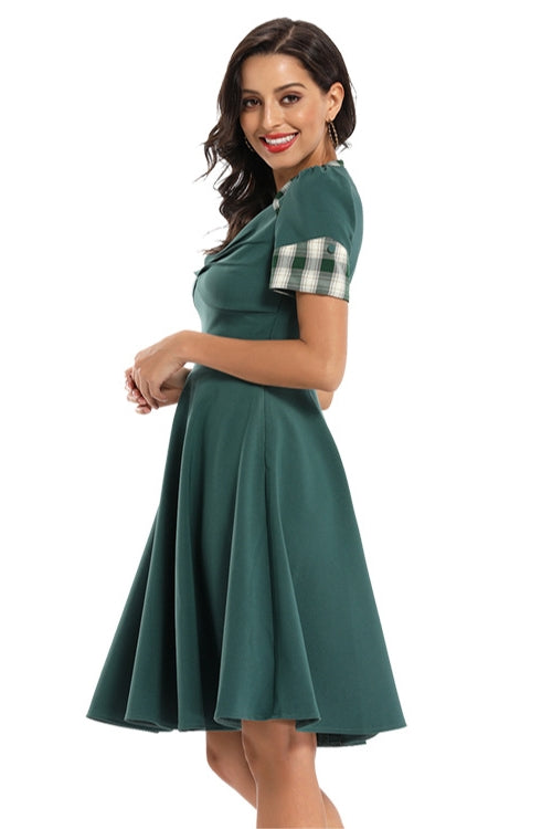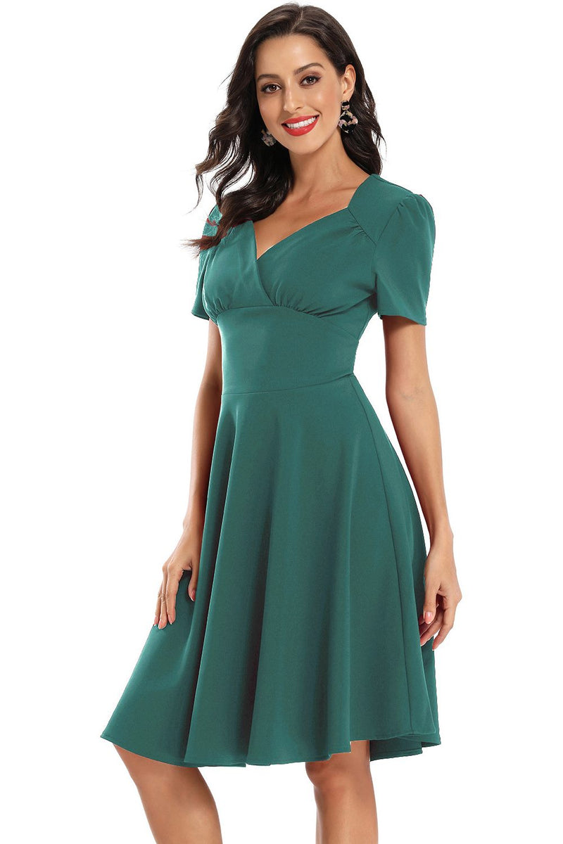 V-Neck Medium Length Teal Party Dress with Short Sleeves