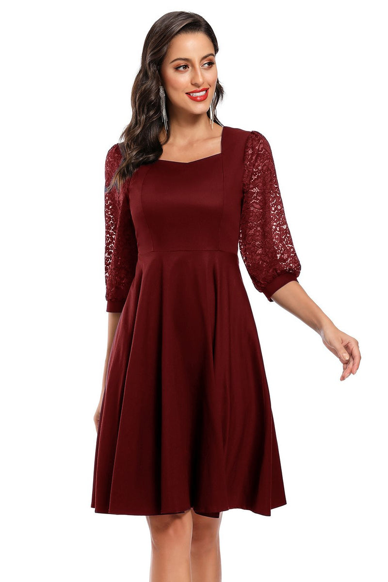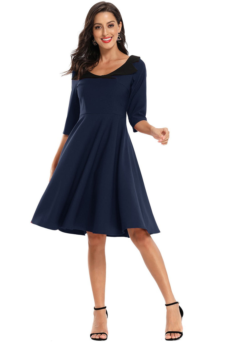 Square Neck Navy Blue Short Party Dress with Long Sleeves