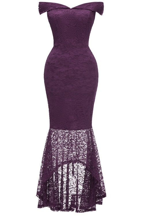 Mermaid Spaghetti Straps Lavender Lace Long Prom Dress