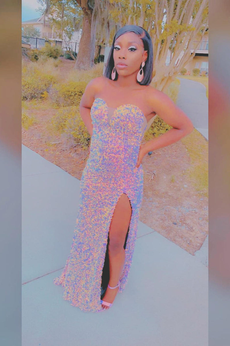 Elegant Sweetheart Sequined Long Prom Dress with Slit