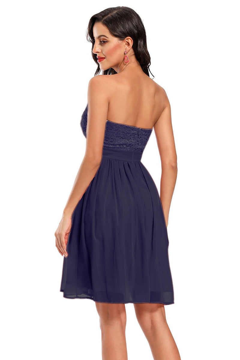 A-Line Strapless Pink Short Party Dress with Lace Top