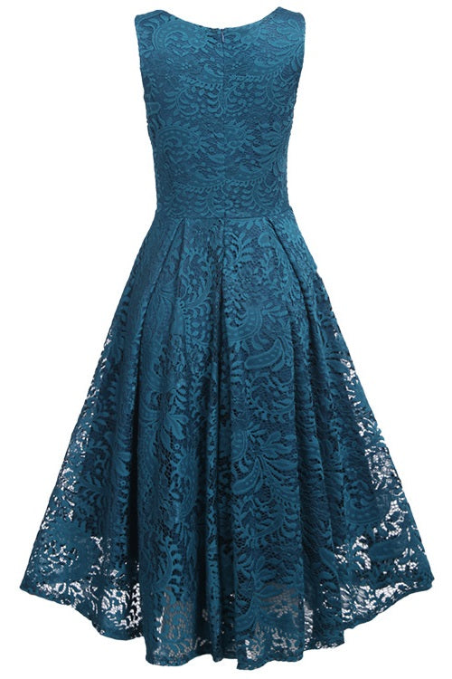 V-Neck Navy Blue Lace Long Party Dress with Sash