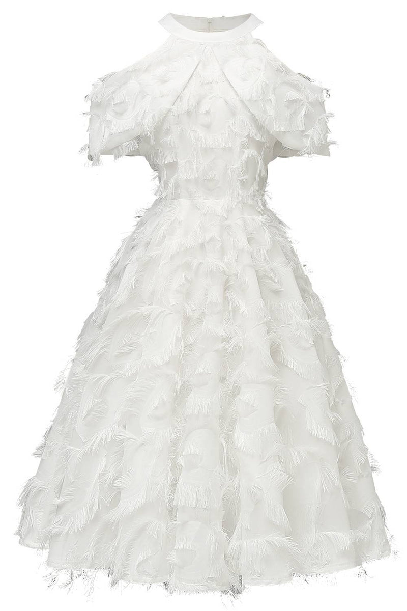 Vintage Off the Shoulder Red Fur Short Party Dress