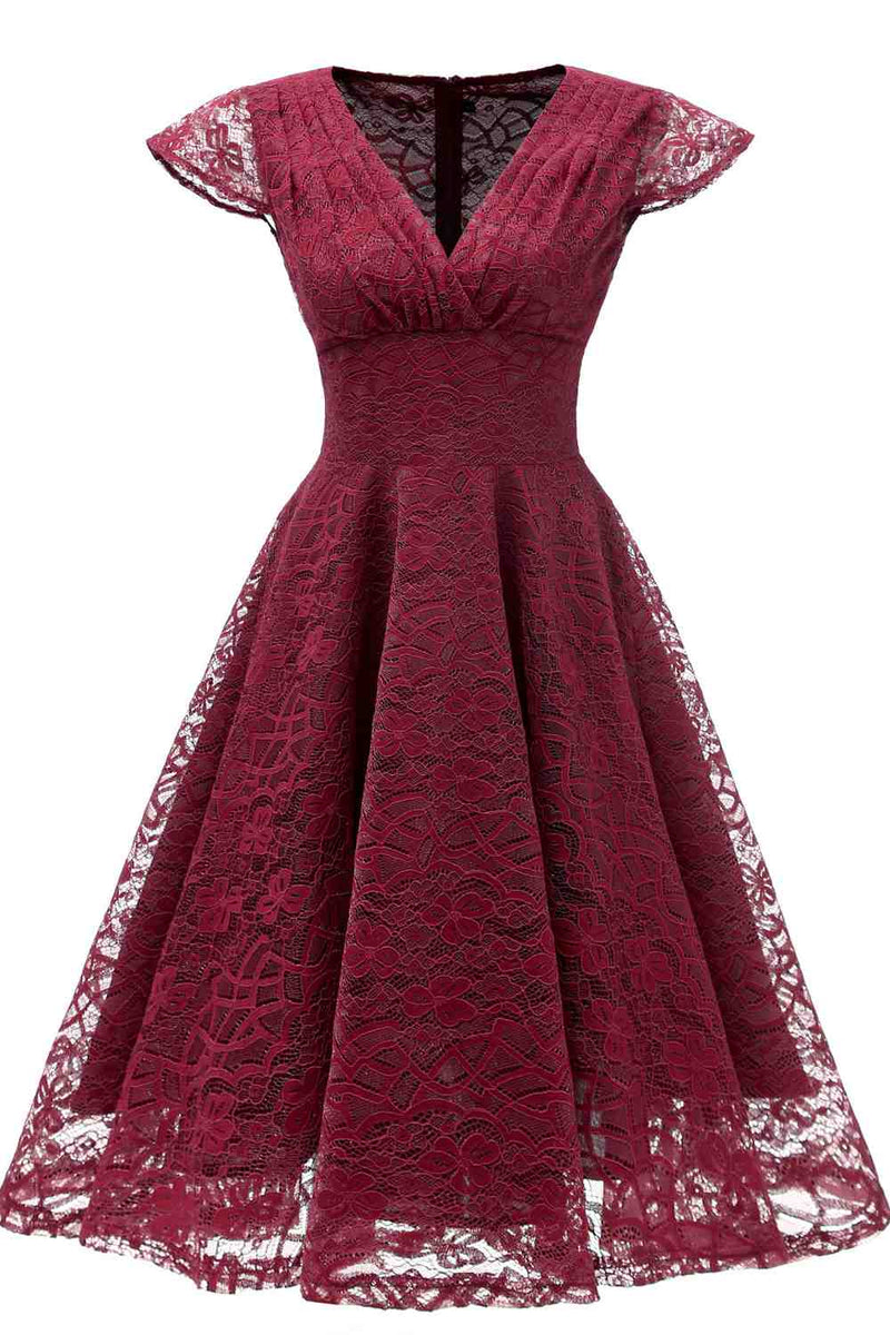 A-Line Double V-Neck Burgundy Bridesmaid Dress