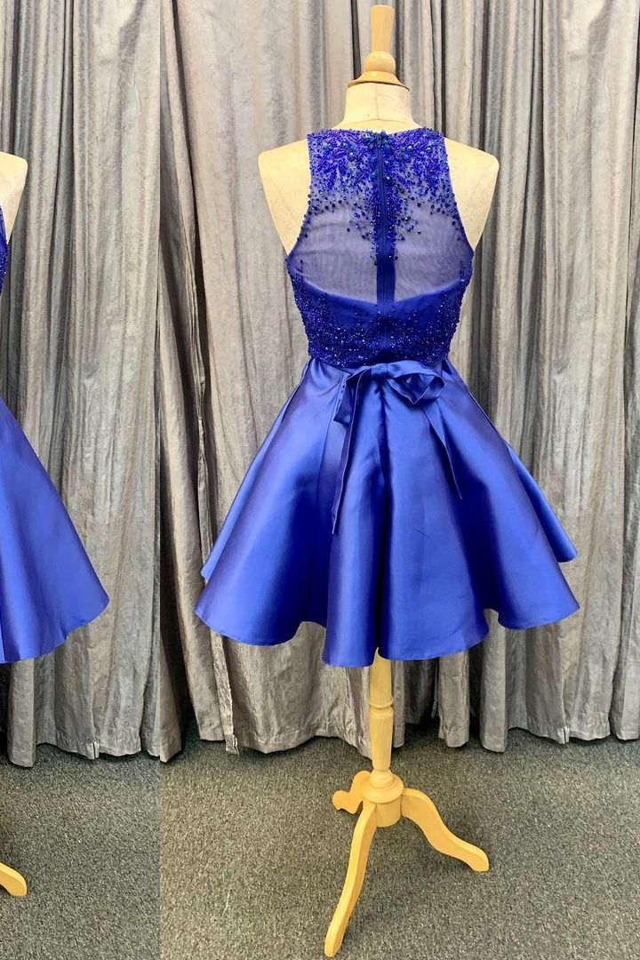 Elegant Navy Blue Cap Sleeves Short Pary Dress