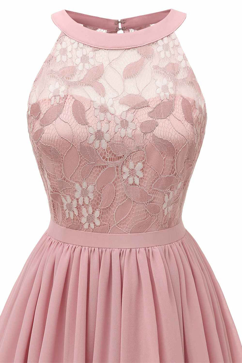 Halter Pink Wrap Bridesmaid Dress with Keyhole