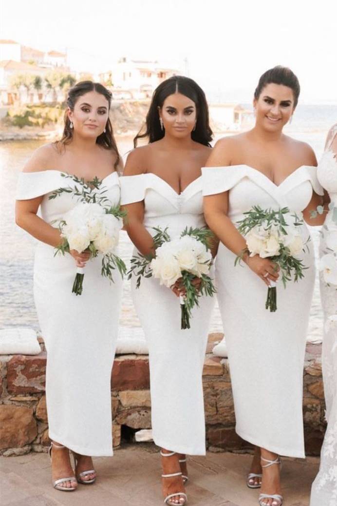 Mermaid Off Shoulder Pink Bridesmaid Dress with Slit Front