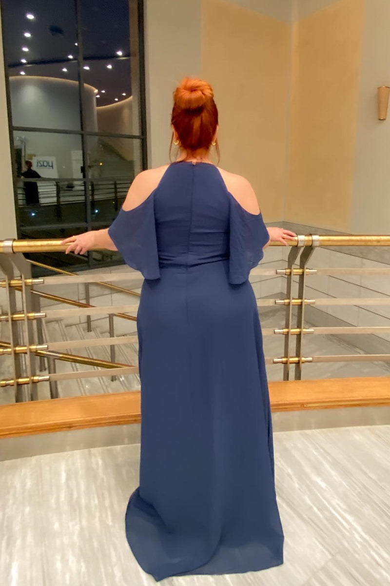 Off the Shoulder Navy Blue Keyhole Chiffon Bridesmaid Dress