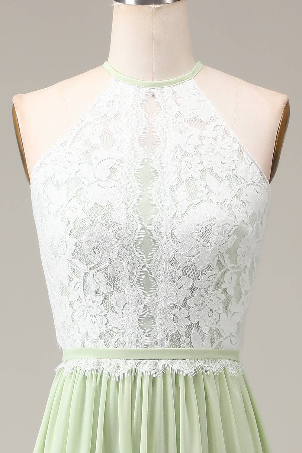 Light Green Lace Top A-Line Long Bridesmaid Dress