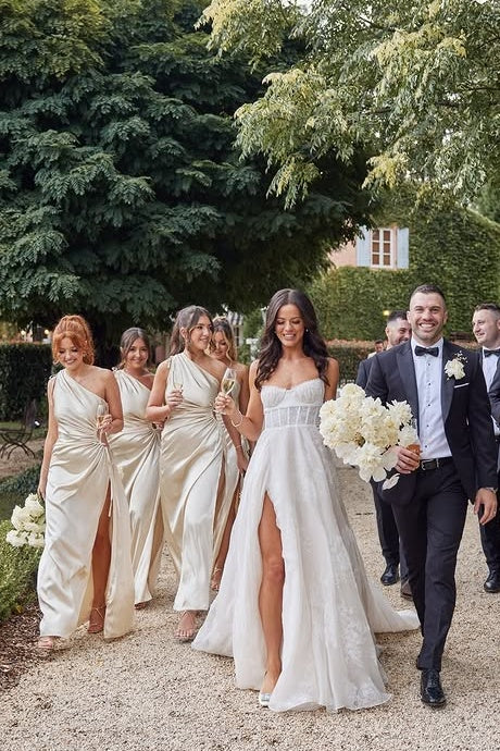 One Shoulder Satin Empire A-Line Bridesmaid Dress With Leg Slit