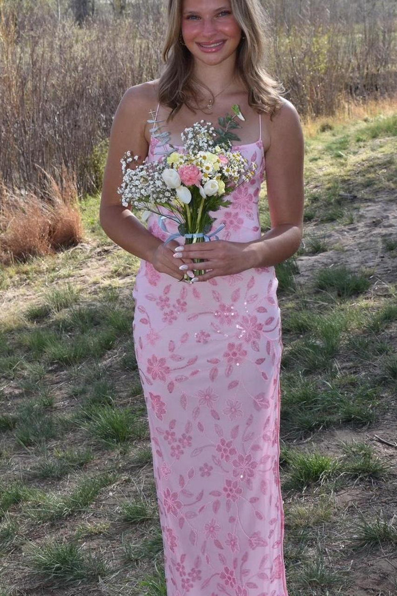 Spaghetti Straps Sequin Applique Evening Prom Dress