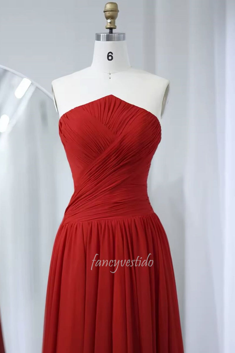 Strapless Keyhole Pleated Chiffon A-Line Prom Dress