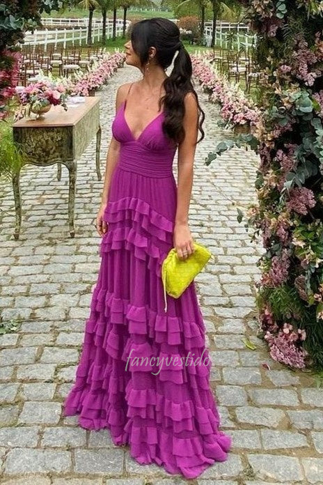 Straps V-Neck Empire Waist Ruffled Layered A-Line Prom Dress