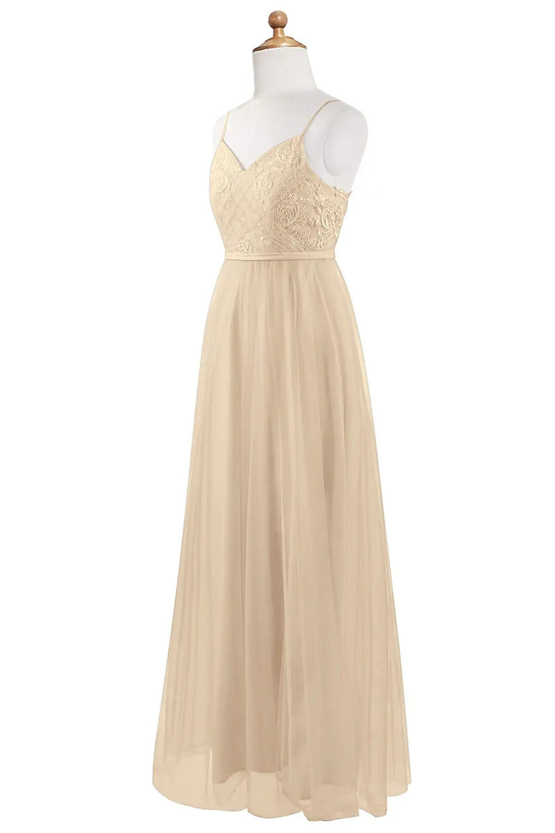 Gold Tulle Lace V-Neck A-Line Flower Girl Dress