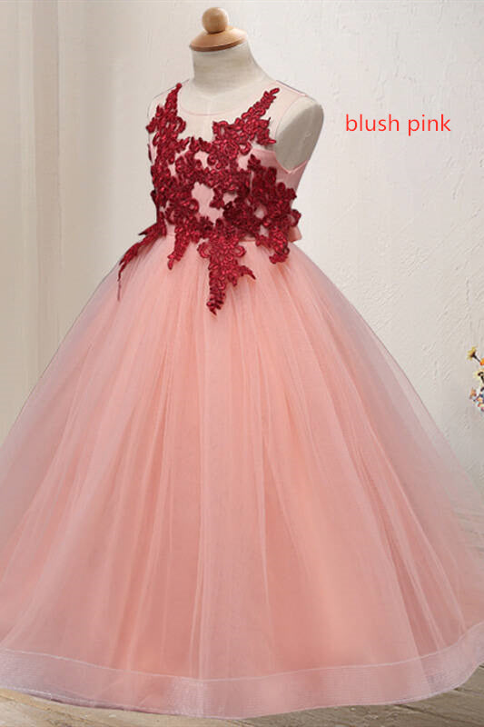 Princess Lace Appliques Dusty Rose Flower Girl Dress with Bow