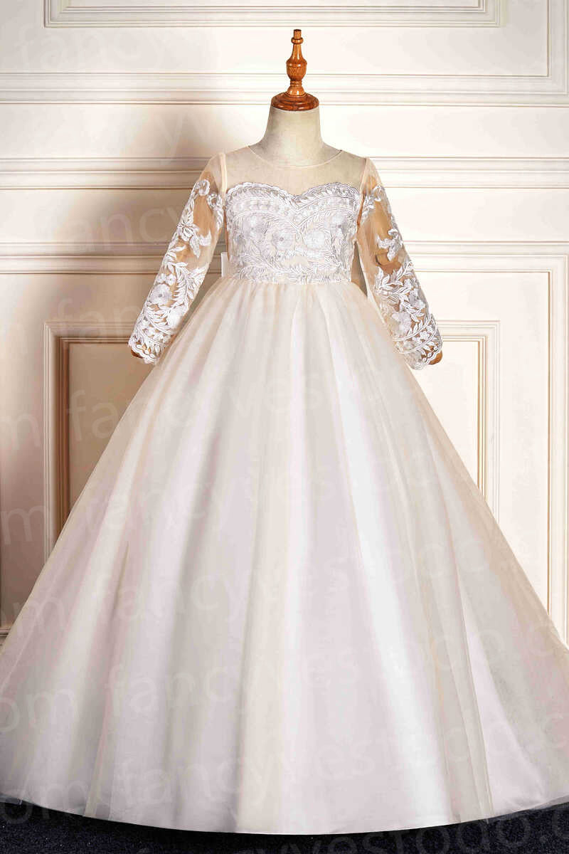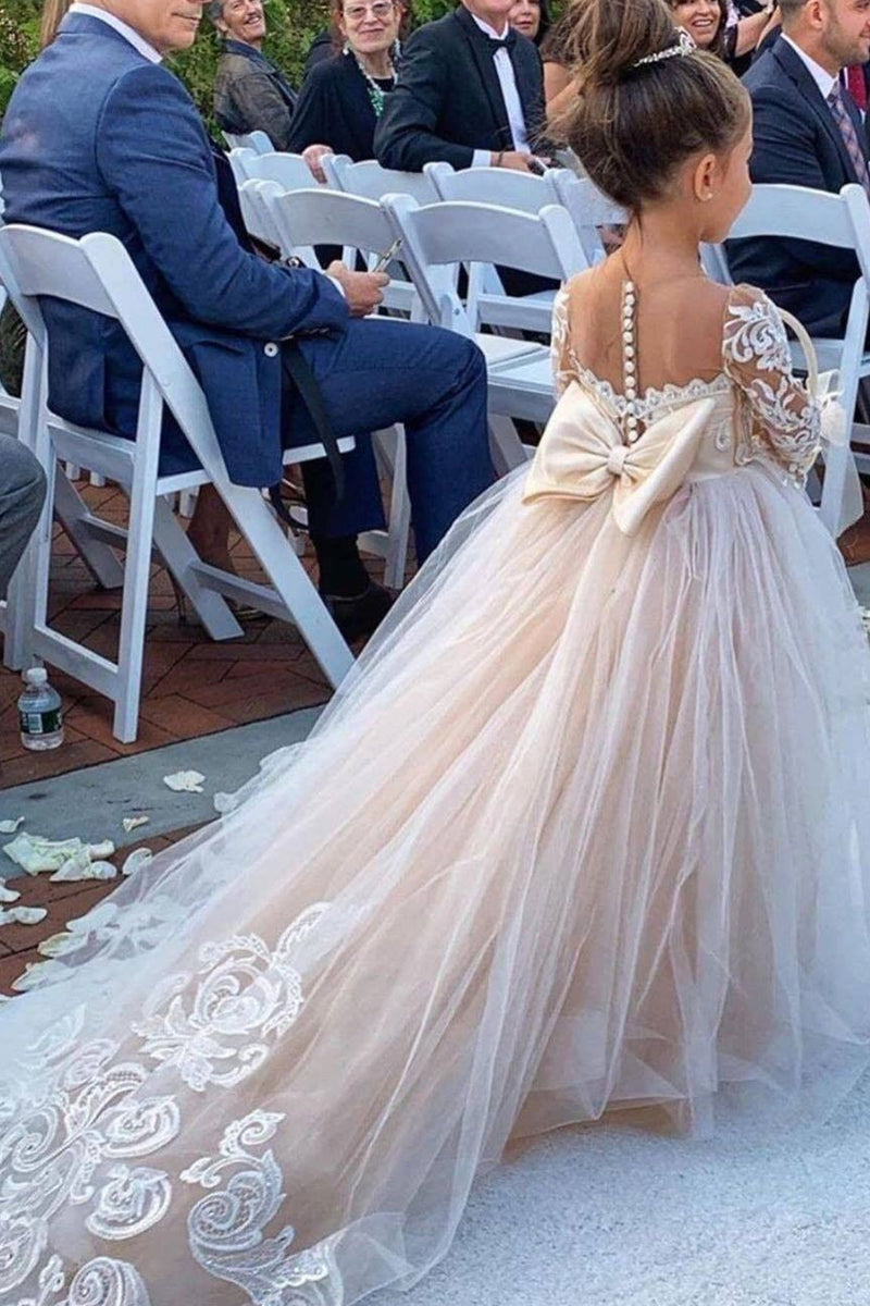 Ball Gown Long Sleeves Flower Girl Dress with Bow
