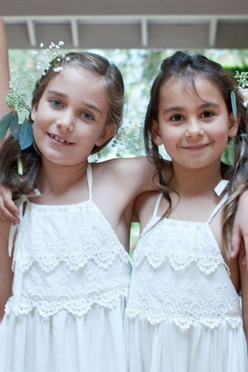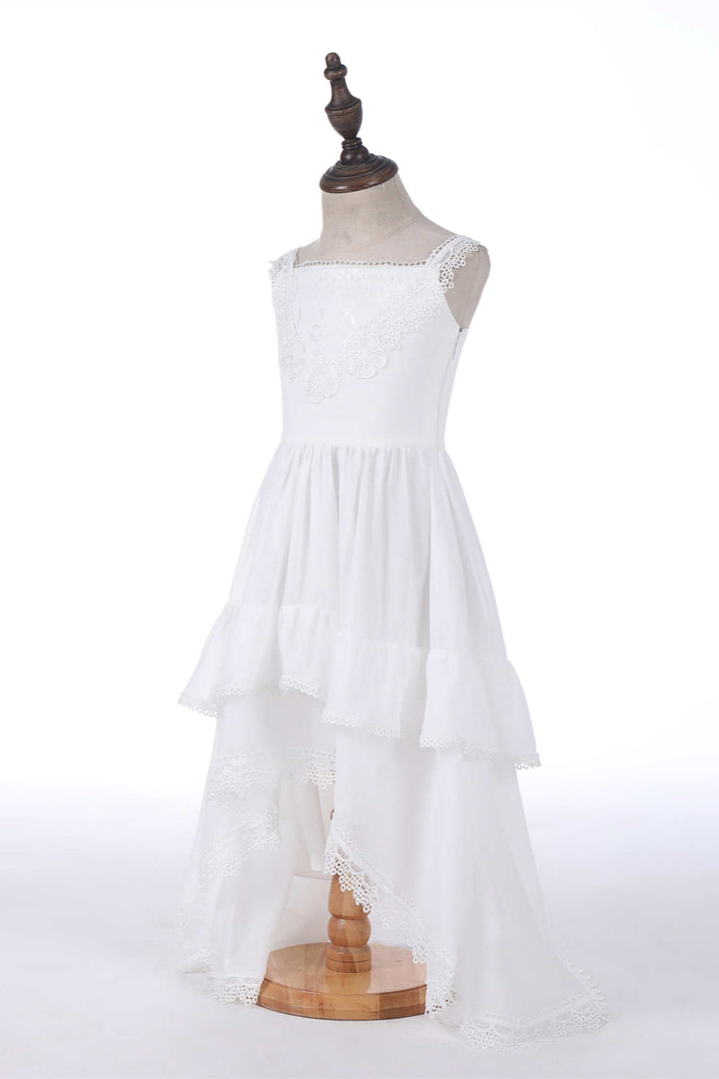 Hi-Low Lace White Chiffon Flower Girl Dress