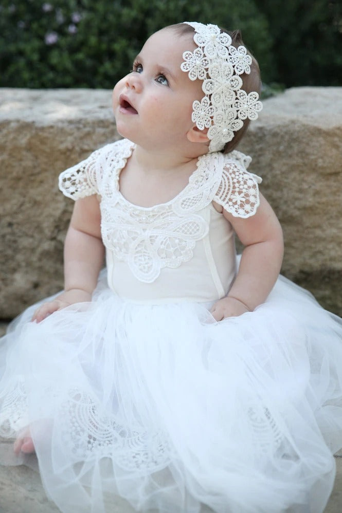 Cute Toddler White Flower Girl Dress with Patched Lace