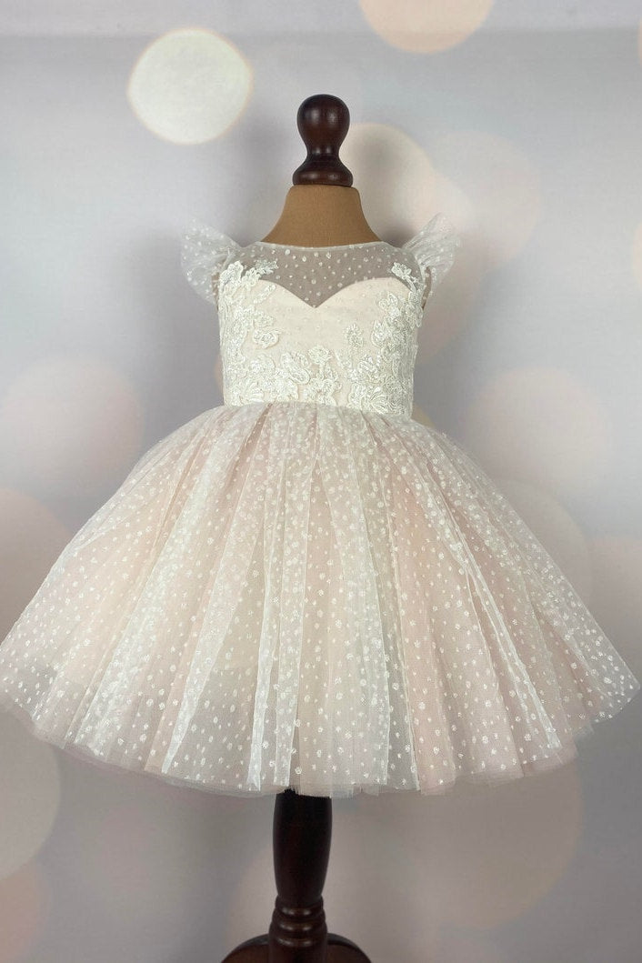 Elegant blush tulle skirt, lined, covered with glitter dots.