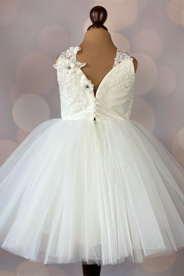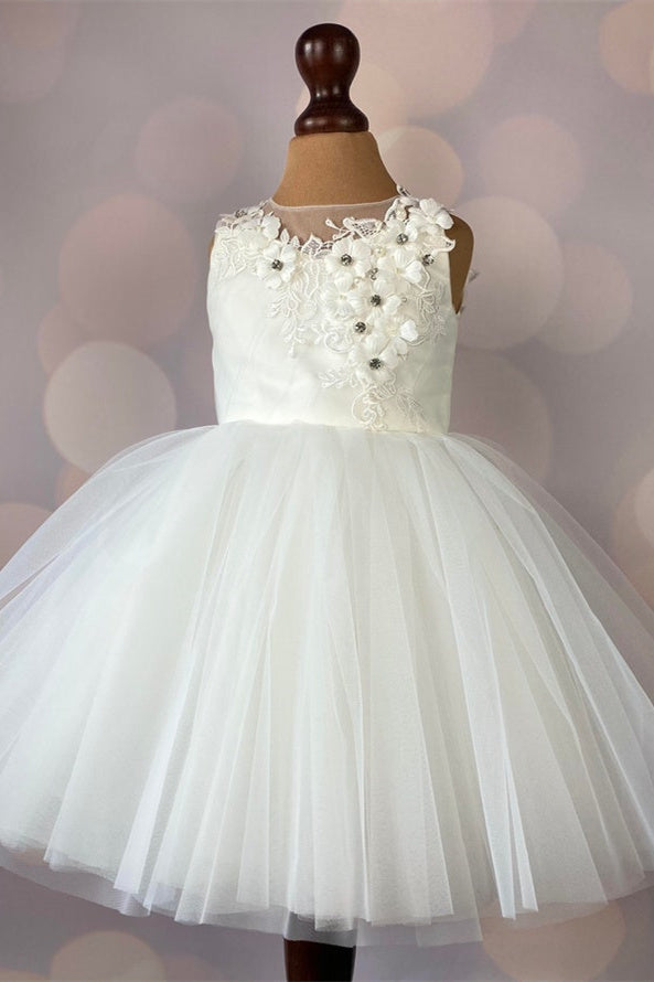 Ivory Beaded Knee Lenght Flower Girl Dress