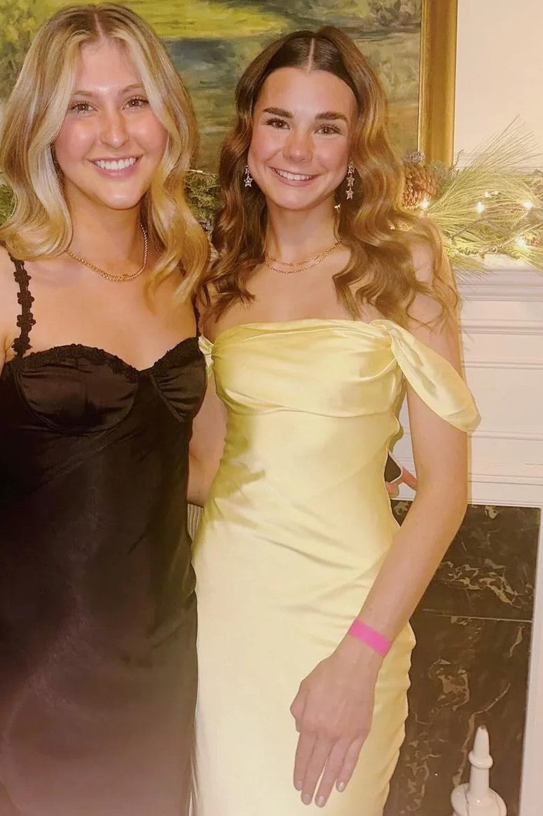 Spaghetti Straps Cowl Neck Tea-Length Champagne Bridesmaid Dress